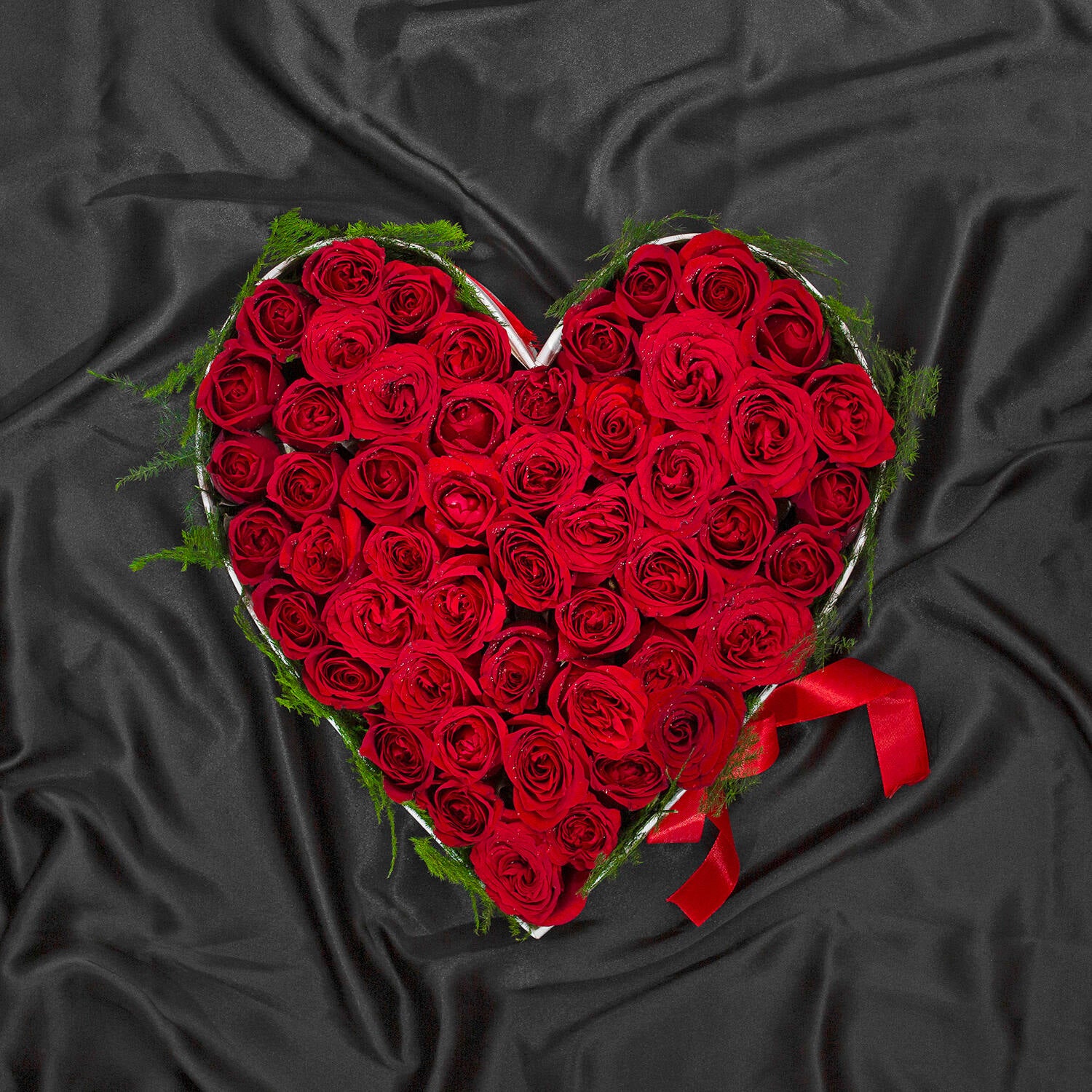 Elevate your expression of love with the Red Roses Connecting Heart Arrangement. This elegant design features two intertwined heart shapes crafted from fresh, vibrant red roses, symbolizing deep connection and affection. Perfect for romantic occasions, it conveys heartfelt emotions with timeless sophistication and grace.